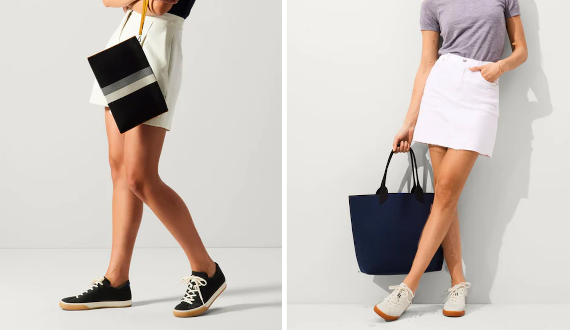 Rothy’s is renowned for its recycled plastic footwear and accessories. While most of the sustainable brand’s shoe offering is dedicated to flats, more recently, they’ve delved into sandals and sneakers. The Rothy’s Lace Up Sneaker, in particular, features soft, flexible uppers, a contoured footbed, padded ankles, durable and supportive gum outsoles, and tailorable laces for the perfect fit. They’re sold in six colors in women’s sizes 5 to 13.