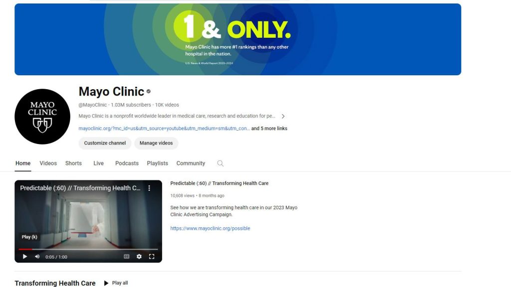 Currently, the top five videos on Mayo Clinic’s YouTube channel are: