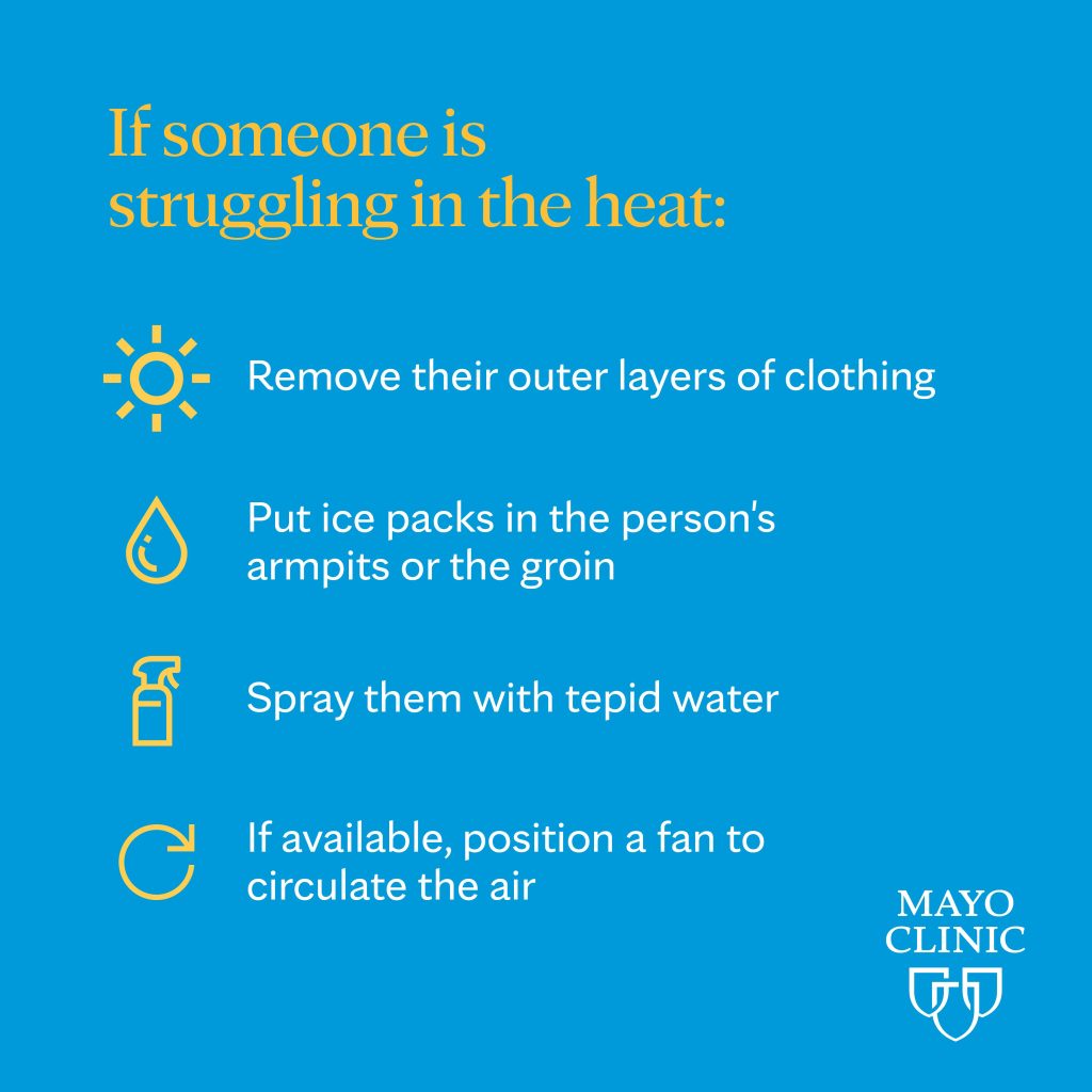 “Acclimate to the heat, and don’t go out during the warmest parts of the day — try to find the coolest parts of the day to keep yourself healthy and away from heat-related illness,” he says.