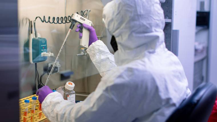 Video: Biomanufacturing engineers are storing chemical substances in a freezer, preparing the biological safety cabinet for cell work and transferring compounds outside the facility. Before entering the clean room, the photography gear was disinfected, and the staff was dressed in protective coveralls.